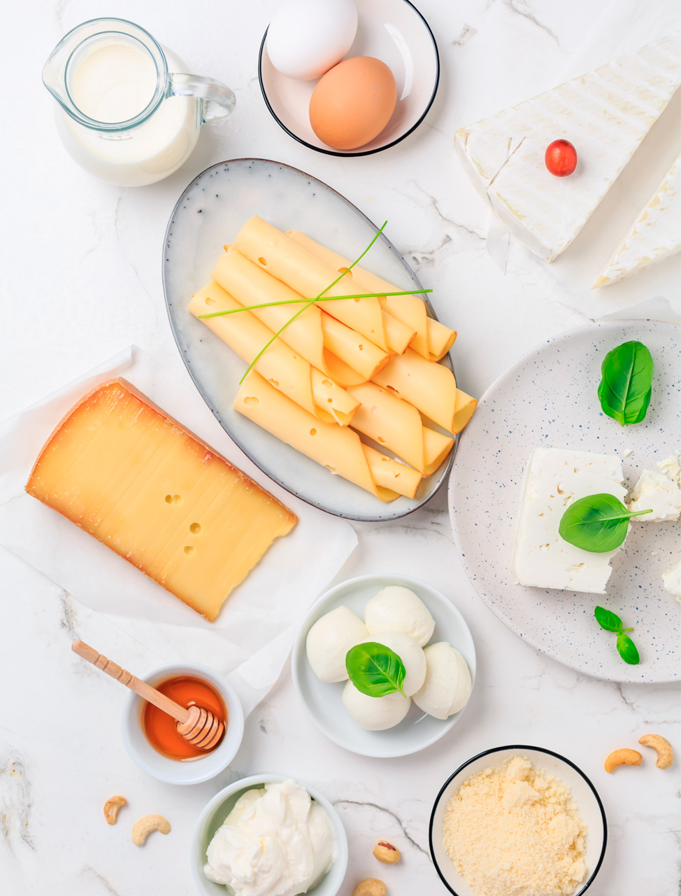 Tierische Eiweißquellen: Käse, Eier, Milch – Bildrechte: envato.com